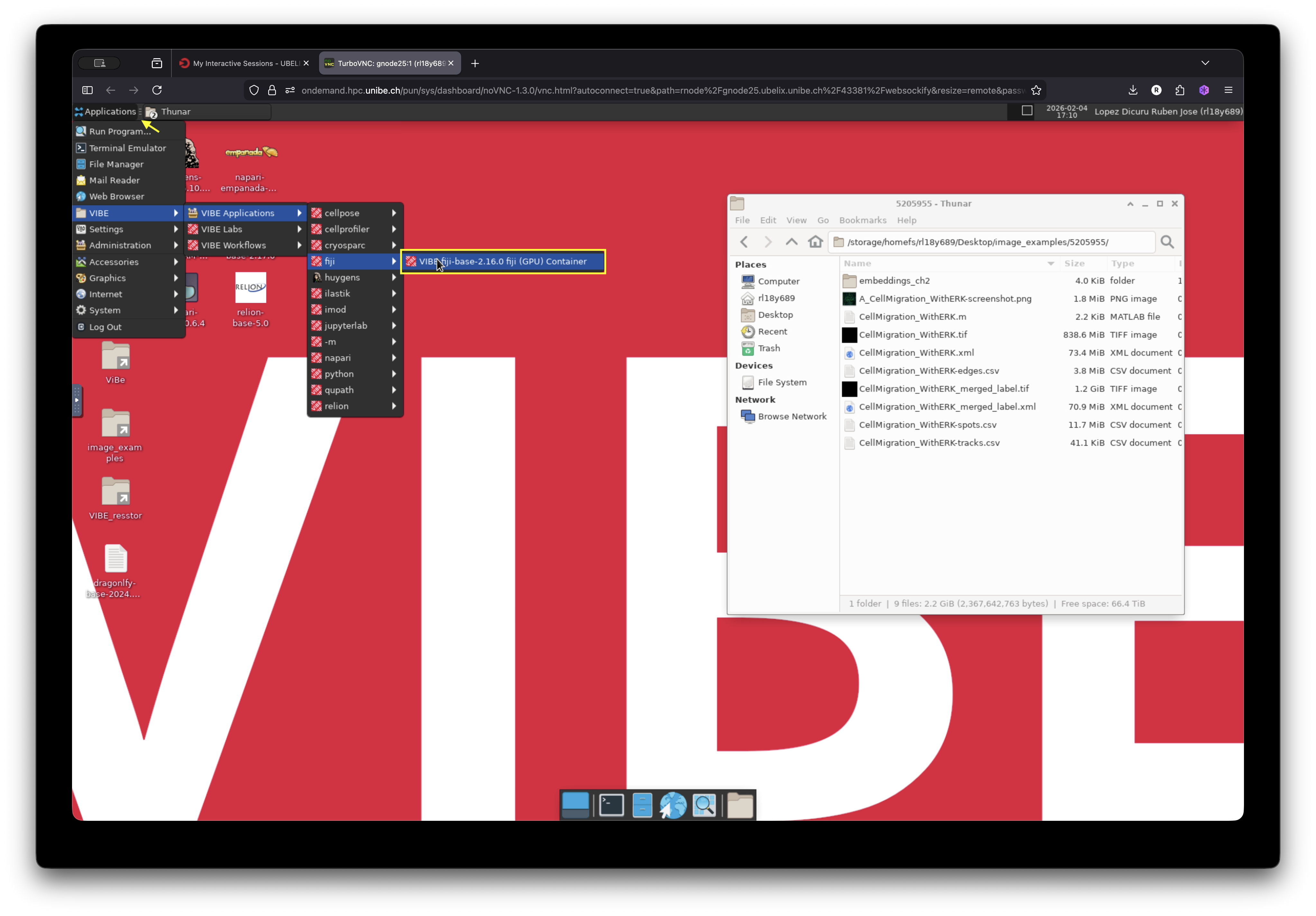 - Navigate again to the Applications menu: VIBE -> VIBE applications -> napari, and click on napari-microSAM-1.6.2.